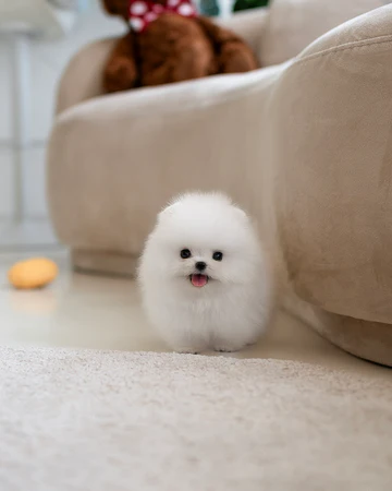 BREED: POMERANIAN NAME: MOLLY SEX: FEMALE COLOR: WHITE AGE: 3MONTHS
